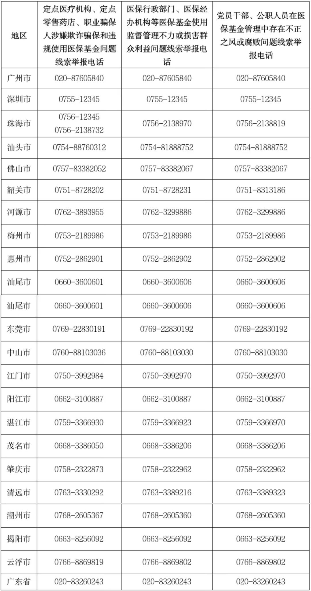 可拨打广东省或线索行为发生地医保部门举报电话进行举报,提醒:请在工作日上班时间拨打。