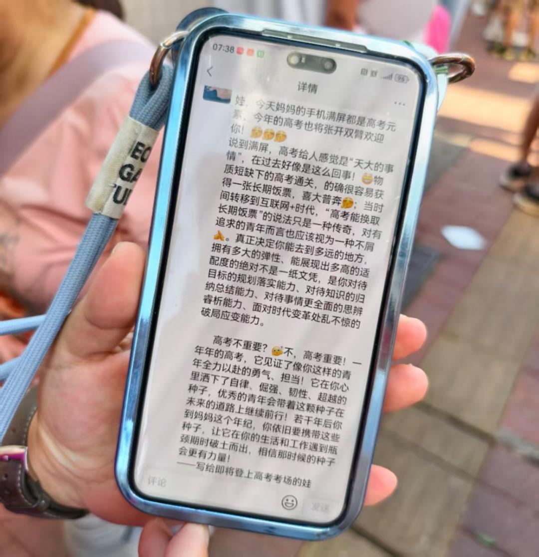 记者特别从诸多精彩场面中,摘选出这些有着“通透”“豪迈”“松弛”底色的动人瞬间。这些瞬间有家长从容送孩子入考场时的坦然,有考生走出考场后高唱歌剧的畅快,也有考生说“对数学要求不高”、希望借助媒体向心仪歌手喊话的松弛感。这些片段充满温度,也折射出当代家庭面对高考时的豁达姿态,或许可为更多人带来关于“成长”的思考。