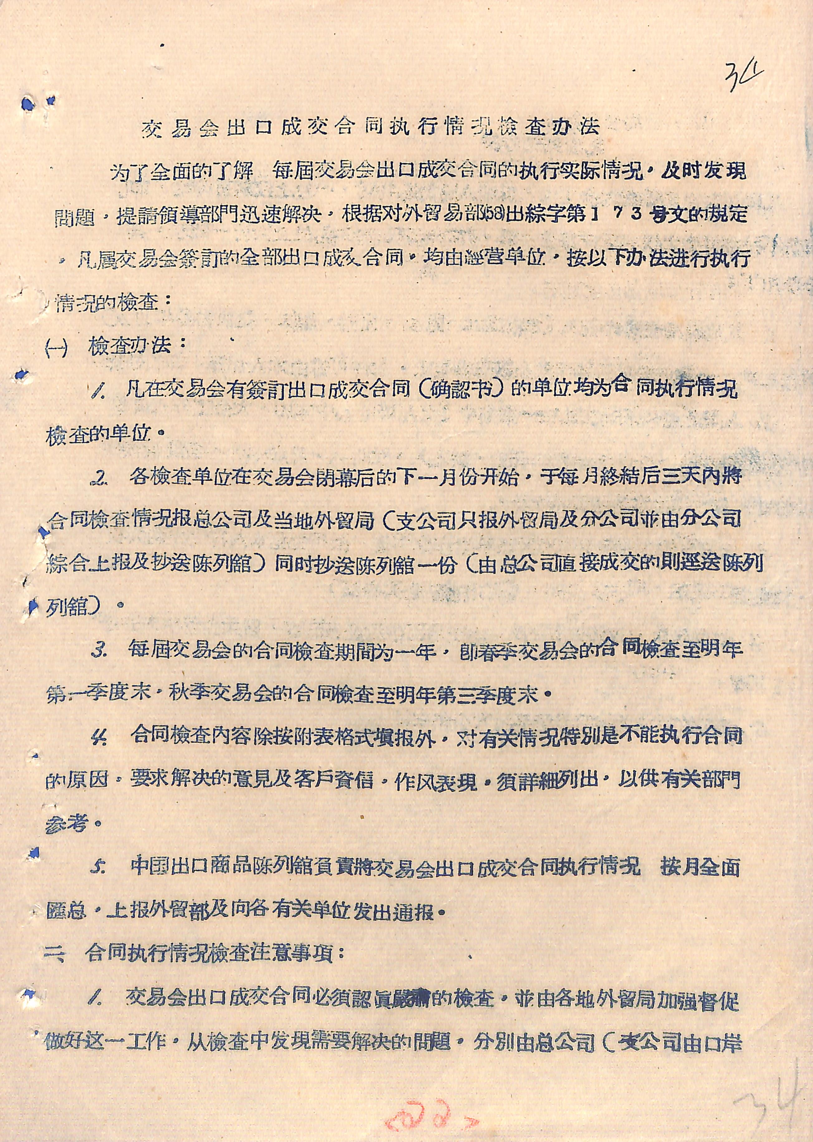 3.《交易会出口成交合同执行情况检查办法》(1958年)