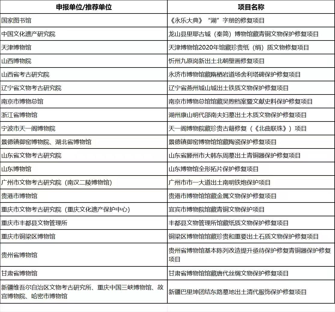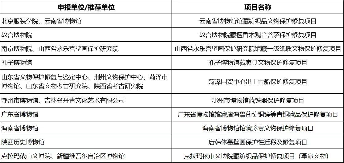 2024全国文物修复案例宣传展示活动优秀项目名单(按行政区划排序)