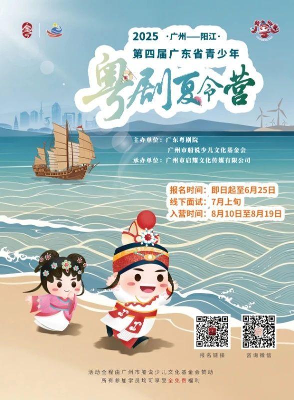 传承粤剧、培育新苗!纯公益、全免费的广东省青少年粤剧夏令营又到招新季。记者获悉,即日起,2025年第四届广东省青少年粤剧夏令营活动开启报名。本届夏令营由广东粤剧院和广州市船说少儿文化基金会继续联手,于8月10日—19日在广州、阳江两地举办。