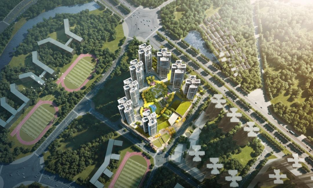 该项目用地面积为4.2万平方米,总建筑面积约23万平方米,总计容面积约16万平方米。建设内容包含8栋26-32层高层住宅、5栋附属配套用房及养老服务中心、商业配套、农贸市场等附属配套。