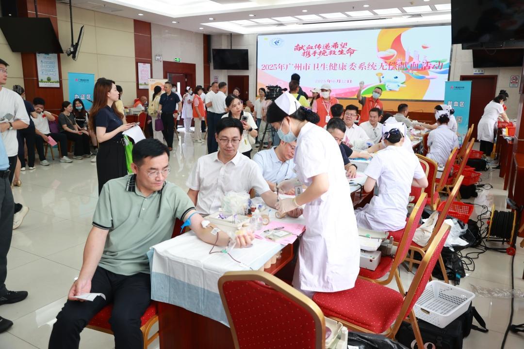 6月12日下午,在世界献血者日即将来临之际,广州市卫生健康委系统开展无偿献血活动。半天时间内,共有近300名卫生健康系统工作人员捐献出血液超6万毫升。