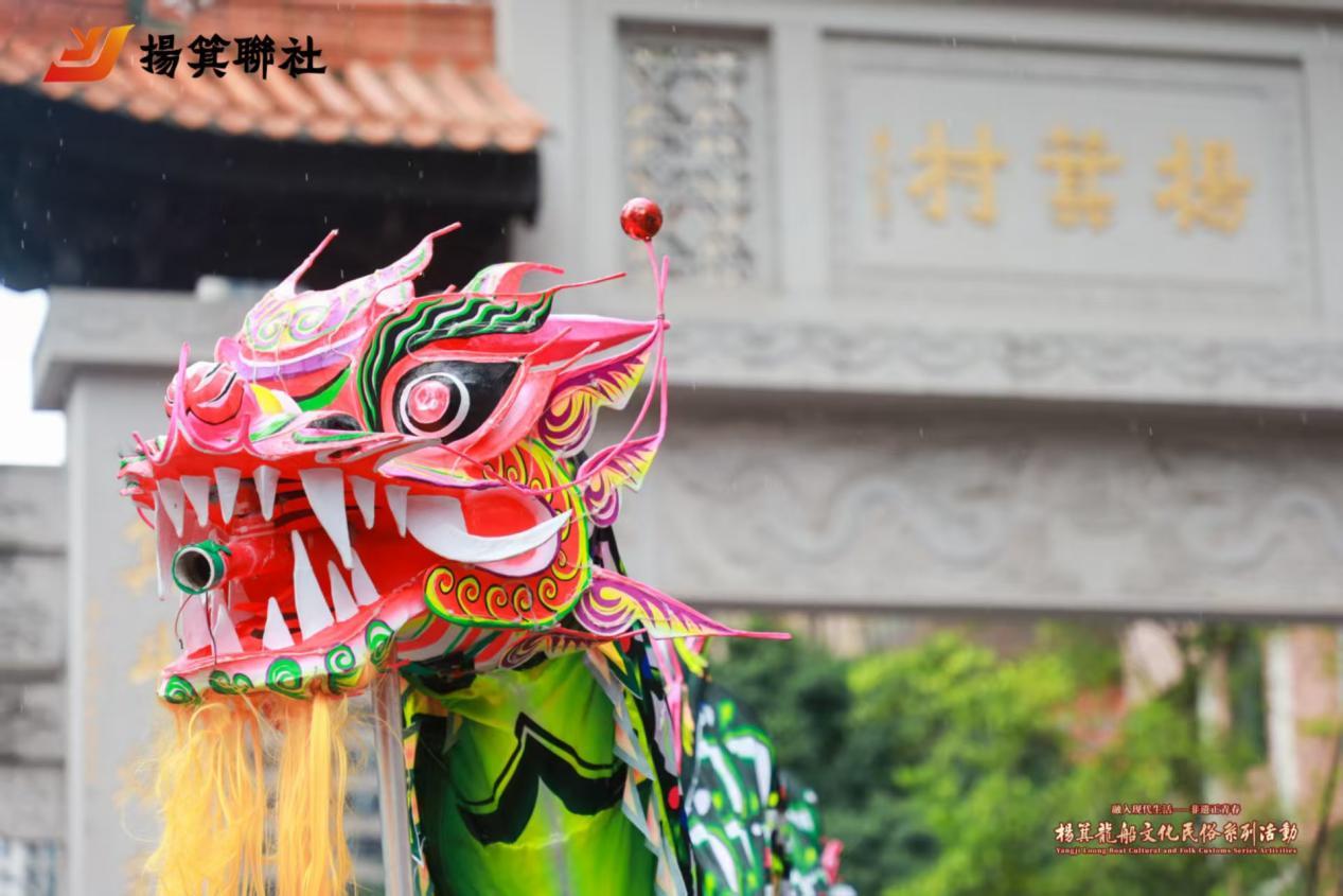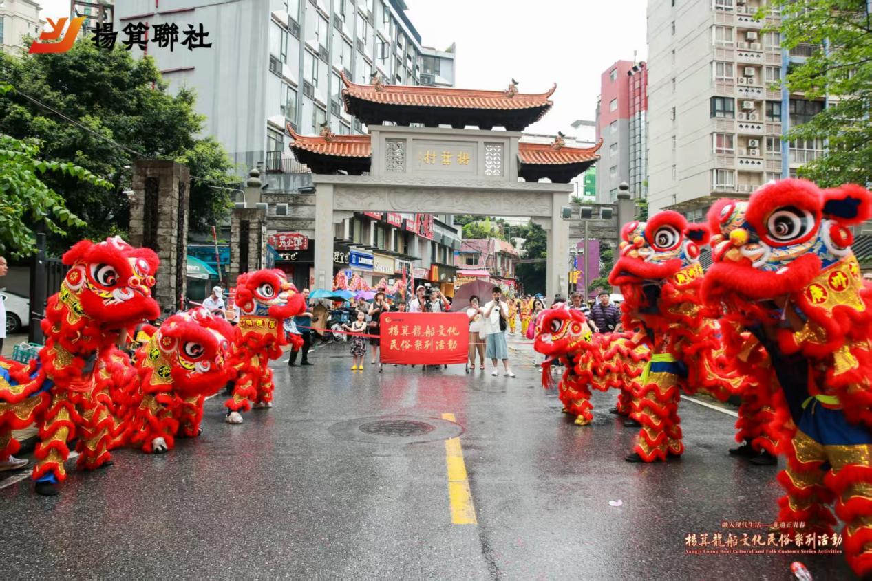 当天杨箕龙狮“巡游”和龙船文化民俗专场演出精彩纷呈。随着《鼓舞欢庆》龙船鼓声的响起,国家级非遗舞龙搭配醒狮的演出,瞬间点燃现场氛围。