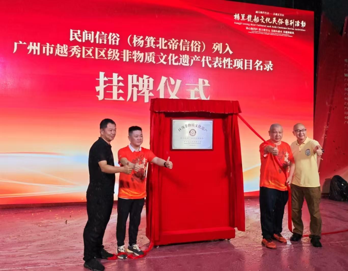 当天,杨箕村还举行了民间信俗(杨箕北帝信俗)列入广州市越秀区区级非物质文化遗产代表性项目名录揭牌仪式。