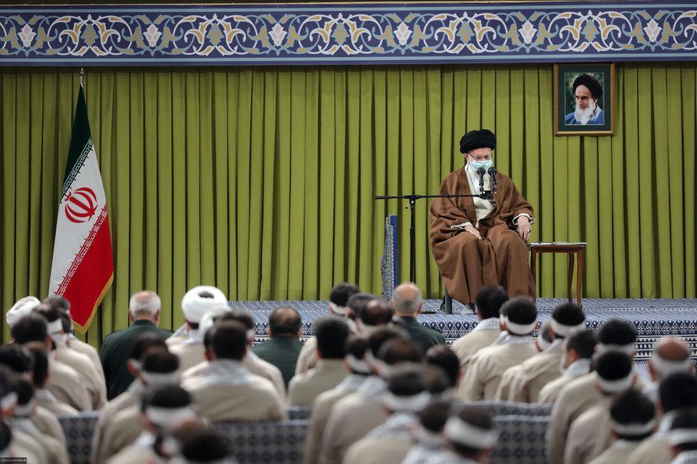 2022年11月26日,伊朗最高领袖哈梅内伊在德黑兰会见伊朗巴斯基民兵代表。新华社发(哈梅内伊网站供图)