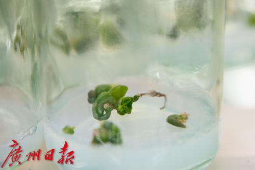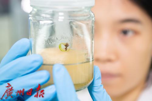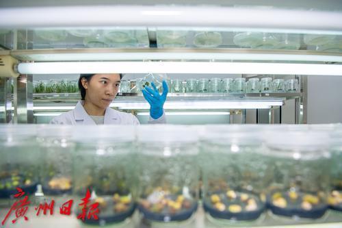 胡桂兵团队的学生在实验室里进行荔枝花药离体再生。