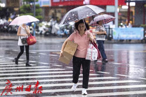 6月17日,广州持续阴雨天气,短时雨势颇大。近期广州雨水持续,市民外出记得带伞。
