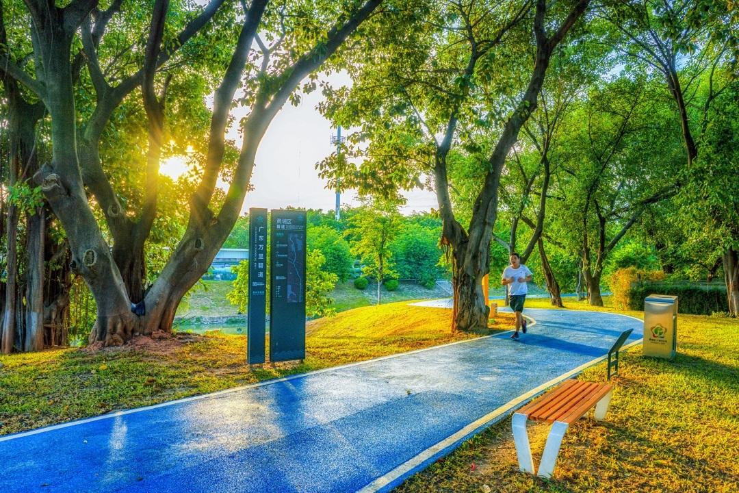 图:市民在南岗河畔万里碧道晨跑 吴伯钊摄