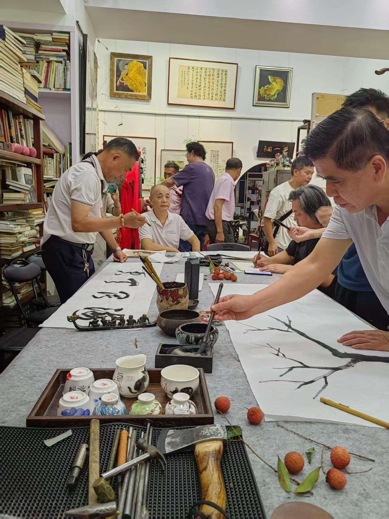 6月18日,粤港澳美术家协会书画家文化雅集交流学习活动在社区中火热开展。粤港澳美术家协会书画教育委员会常务副会长刘兴一、粤港澳美术家协会副主席兼执行秘书长陈家经,带领着20多位书画家走进社区得月堂书画室,通过挥毫泼墨的方式,为社区居民和学生带来了一场艺术之风。
