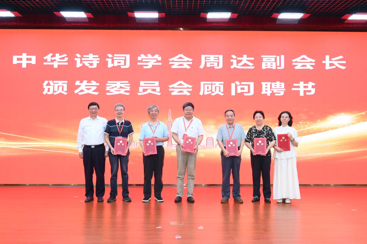 周达副会长宣读了中华诗词学会关于成立中华诗词学会学校诗词教学与研究工作委员会的文件。广东中华诗词学会会长郭杰被聘任为中华诗词学会学校诗词教学与研究工作委员会主任。知名学者、专家方铭、张海鸥、赵维江、蒋寅、戴伟华、沈金浩、周建忠、曹旭、孙明君、易闻晓、林家骊、张宏生、李桂娟、刘琴宜14人被聘任为顾问。李韶彬被聘任为常务副主任,刘汉光、闵凡军、谢剑雄、陈俊一被聘任为副主任,祁丽岩被聘任为秘书长。杨华、梁江南、谢家祭、包翠玲、曾艳梅、王振鑫、杨阿敏被聘任为副秘书长。