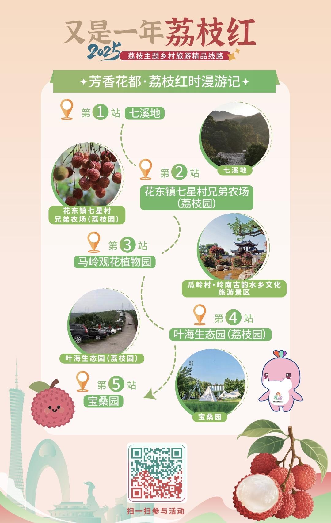 活动现场,市文化广电旅游局联合市农业农村局发布了20条荔枝主题旅游线路,覆盖增城、从化、黄埔等荔枝主产区,串联起荔枝果园、特色乡村、精品民宿、历史古迹和自然风光,勾勒出一幅幅动人的田园诗篇,既有亲子荔趣的温馨,也有活力畅享的激情,还有欢乐时光的惬意。市民游客可以跟随这些旅游线路,品味千年荔韵,徜徉青山绿水,领略田园风光,体验农事乐趣,感受广州乡村的生态之美、产业之兴、文化之韵。