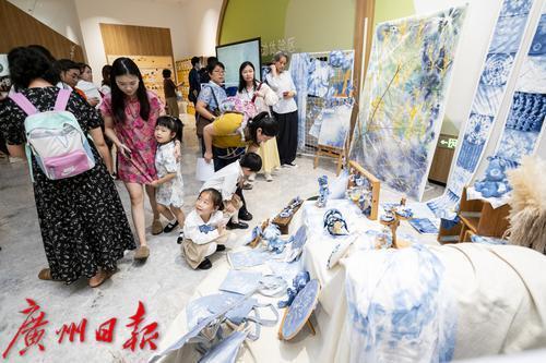 活动现场,同学们被丰富的场景吸引,不时有同学举起相机拍照打卡,记录美丽画作和美好瞬间。观展后,家长带着小朋友参与水墨、版画、扎染等创作。
