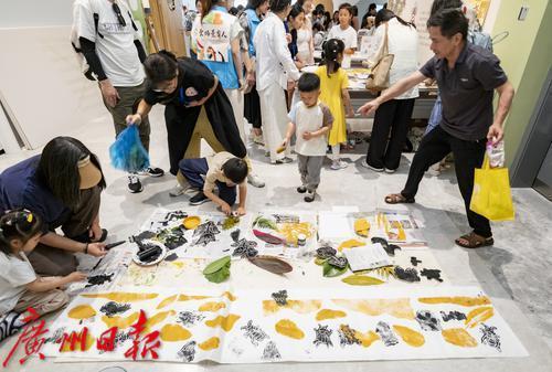 水墨艺术体验区,艺术家和幼儿及家长现场创作。