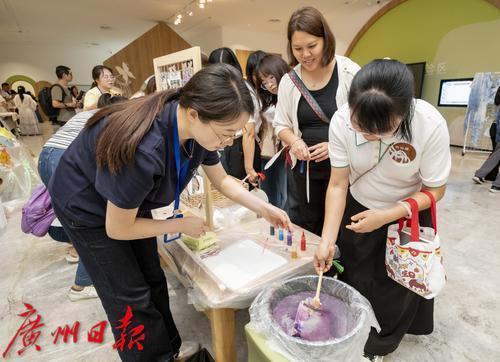 漂漆艺术体验区吸引众多幼儿和家长及与会老师前来体验。