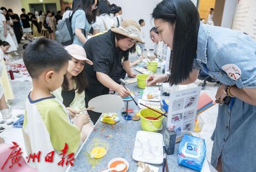 “我们展览是以“五行·五色”作为主题,比如说木代表青色,也代表春天和东方的意向。”广州艺术博物院陈列研究馆员、策展人王华菁表示,通过参观美术展和参与艺术体验,在潜移默化中对小朋友进行场景化美育,让孩子们感受传统文化的魅力。