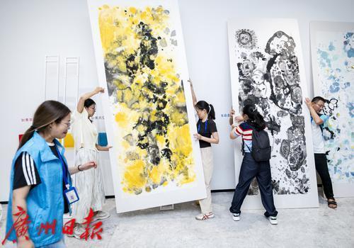 现场展示由艺术家和幼儿园老师、幼儿及家长现场共同创作的水墨艺术作品。