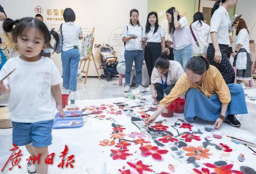 水墨艺术体验区,艺术家和幼儿现场创作。