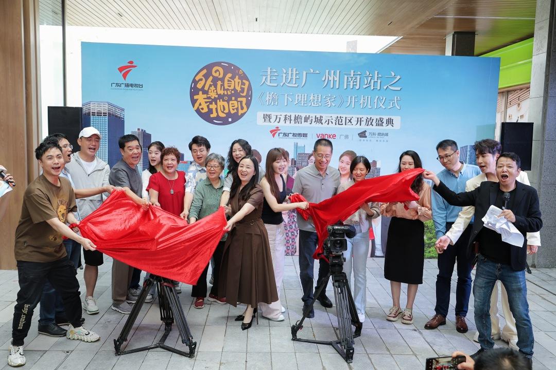6月21日,备受瞩目的粤语长寿情景喜剧《外来媳妇本地郎》全新单元剧《檐下理想家》在广州南站地区万科檐屿城项目现场举行开机仪式。
