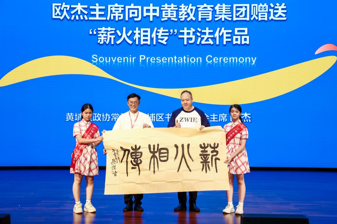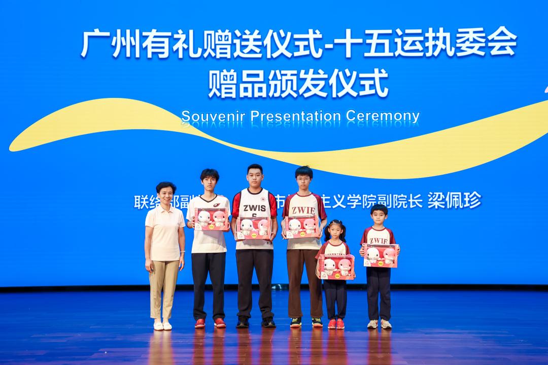 紧随其后的是充满温情的“同心筑梦,共育未来”赠品颁发仪式。体育冠军代表向中黄学子赠送了专业的运动器材,鼓励大家积极投身体育锻炼,强健体魄。广东省击剑协会副主席、重剑世界冠军龙杰赠予广州市中黄港澳子弟学校“侨胞之家”击剑器材。这份珍贵的礼物不仅丰富了“侨胞之家”的体育活动内容,更搭建起一座促进海内外华人华侨及国际友人友好交流的体育桥梁。