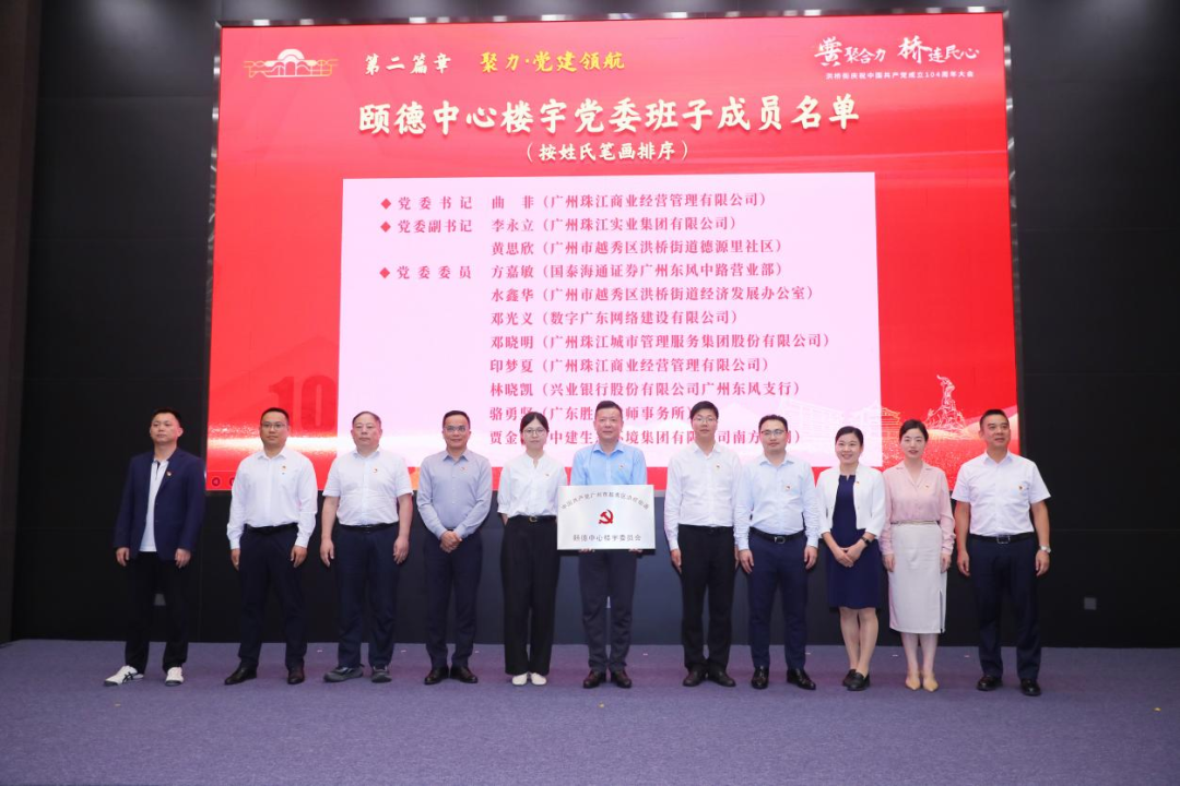 在“聚力·党建领航”篇章中,大会为洪桥街道首个功能型楼宇党组织——颐德中心楼宇党委授牌。依托越秀区超甲写字楼——颐德中心的楼宇物理空间和治理需求,设立区域性、功能型党委,通过政治引领、资源整合、服务联动推动楼宇内党组织协同共建,提升楼宇治理效能与经济活力。
