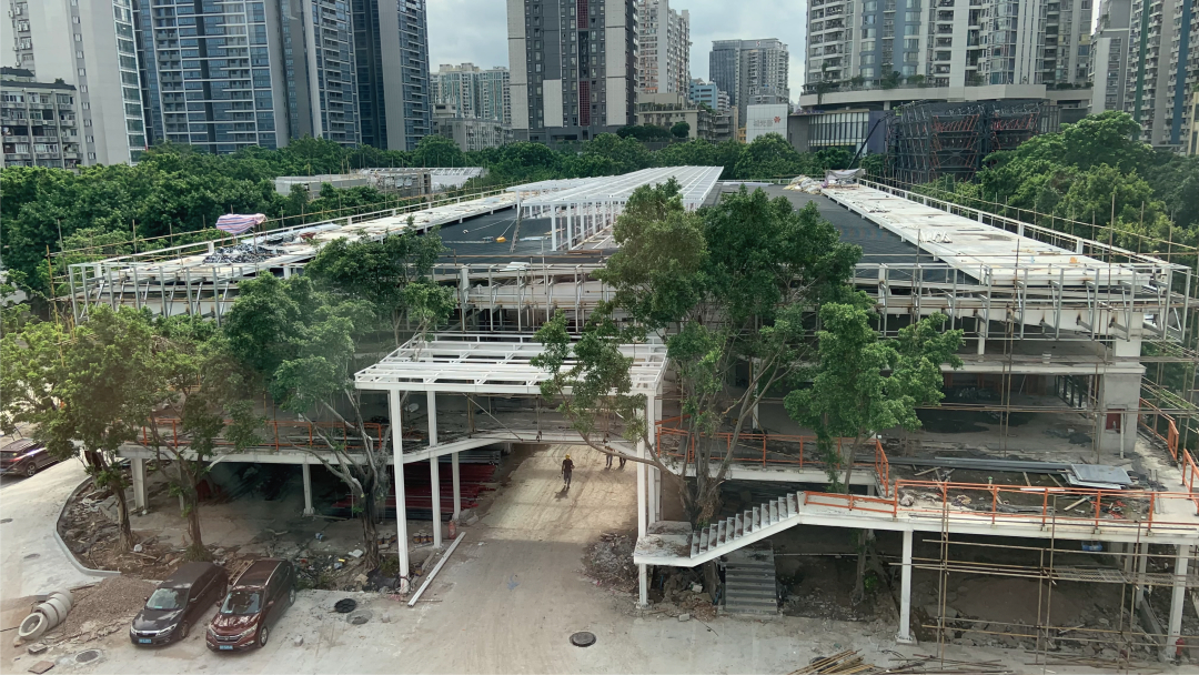 在空间功能布局上,项目巧用保留下来的厂房及大榕树,结合公园式商业模式的新趋势,设计出广州首个公园式穹顶立体街Mall、独栋科技先潮体验空间、Live house潮玩乐趣沉浸场、榕树里漫游街、赛博朋克茶饮街、夜肆烟火里等六大特色主题街区。在立体街Mall,丛林绿植被搬入室内、木质共享阶梯、树生鸟巢、花园式休憩区……为市民游客开启一场全新消费场景体验。