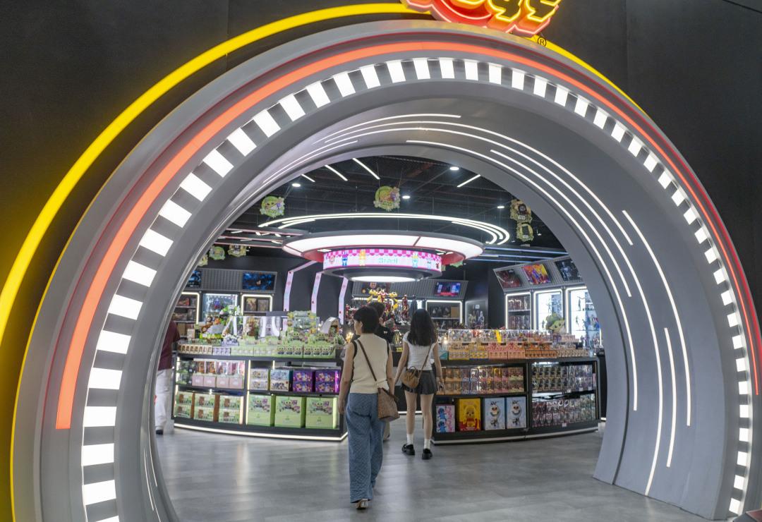 “青年发泄中心”是一家集合了七八十个国潮品牌的服装折扣店,以“去库存+潮体验”的模式快速走红。它不仅满足了年轻人对“平价与潮流兼得”的消费需求,更通过“每城一设”的在地化视觉设计,让门店本身成为一处城市文化的潮流载体。这种国潮策展体验新消费模式由跨粤文化负责人林雨后首创。作为一家传承非遗的文化平台,跨粤文化还把非遗轻展厅安置在1906科技园办公区,展厅内,粤剧、醒狮、古琴、抢包山等非遗代表性项目被青年艺术家们以插画、装置、影像等多元媒介重新演绎。“我们知道今天的年轻人节奏快、信息密度高,那我们就用‘5分钟’的展览动线,提供一个轻松的入口。只要他们愿意多停留5分钟,我们就有机会在他们心中埋下一颗文化的种子。”林雨后表示。选择1906作为展厅落点,并非偶然,他说:“我非常喜欢广州,尤其是这里——既有老西关的传统底蕴,也有很多新的活力,还充满烟火气。它就是一个传统文化与青年文化可以自然对话的地方。”