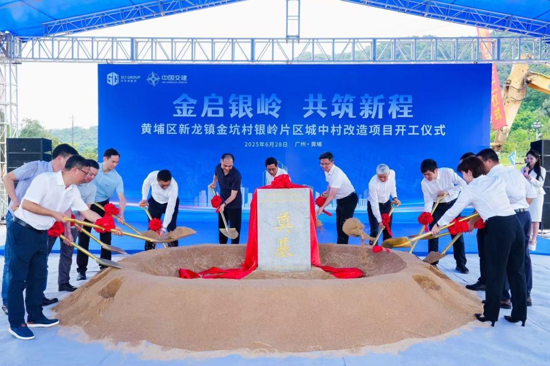 6月28日上午,广州市黄埔区新龙镇金坑村银岭片区城中村改造项目复建区全面破土动工。