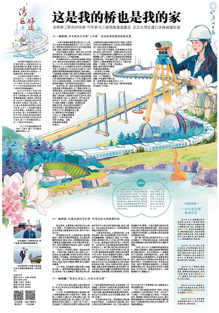 自2010年来到广东参与桥梁建设以来,15年里孙悦楠先后参与了港珠澳大桥、深中通道、黄茅海跨海通道三座超级工程的建设,也见证了粤港澳大湾区桥梁建设通江达海的飞速发展。如今,她从桥梁建设者转型为桥梁守护者,从另一个角度续写着和大桥的情缘。在她看来,大桥是有生命的,每个阶段都需要不同的守护者,而她的幸运是在最好的时代成为大桥腾飞历程中的两个逗号,前一个写在崛起的路上,后一个画在守护的途中。