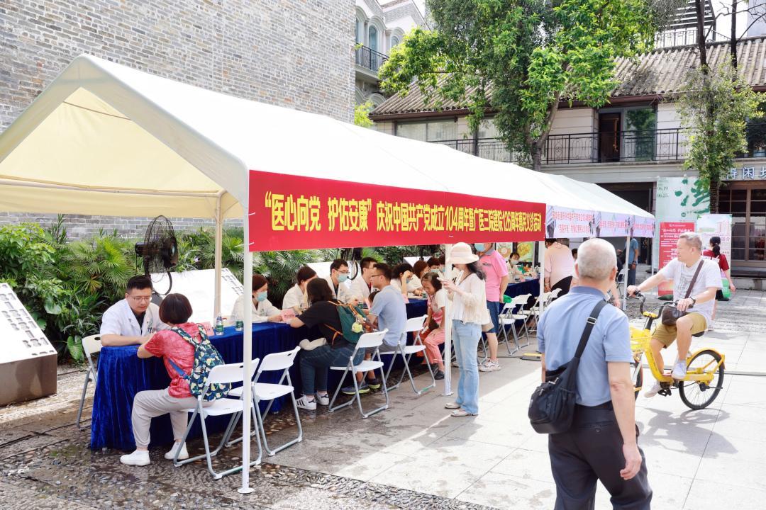 义诊现场,党员医务工作者为居民提供一对一诊疗服务,针对夏季多发的感冒、冒汗、胃肠不适等问题,结合脉诊、舌诊等中医手段辨证施治。活动现场同步设置血压、血糖测量区,帮助中老年人及时掌握基础健康指标。不少居民闻讯而来,有序排队候诊。