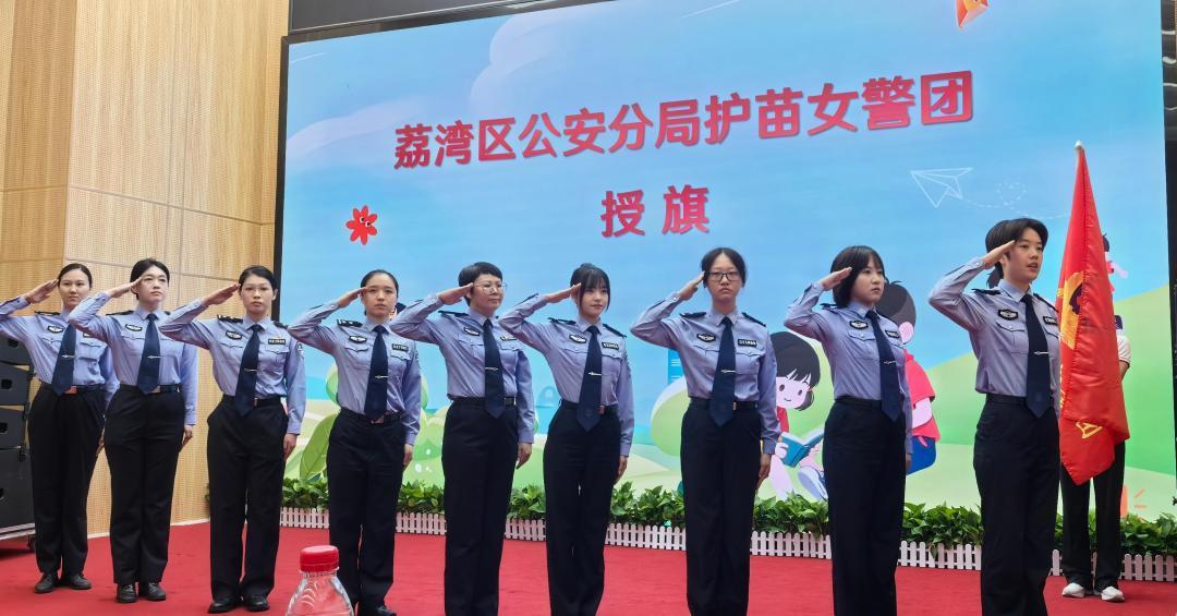 主舞台活动以“致敬成长”为主线,串联起一场场直抵人心的视听盛宴。荧幕光影流转,“法翼天使”预备工作视频全景回溯荔湾区过去一年法治宣传、心理疏导、困境帮扶的坚实足迹,唤醒在场人员的守护共鸣;舞台上,情景剧《法翼护航之小洋的故事》以真实案例为蓝本,同学们的真挚演绎,生动展现“问题少年”在多方关爱下的蜕变历程,诠释“教育救赎”的深刻内涵。授旗仪式庄严举行,区公安分局护苗女警团接过队旗,以“藏蓝力量”许下守护誓言;女警代表麦凤妃深情讲述《孩子,请听我说》,用一线办案中的暖心故事,传递刚柔并济的关怀。区司法局的法治故事《让每一朵青春之花都在法治阳光下绽放》、区妇联的《爱心妈妈美“荔”同行》分享,从司法实践与社会帮扶双视角,绘就“法治温度”与“社会关爱”交织的温暖图景,凝聚起未成年人保护的磅礴合力。