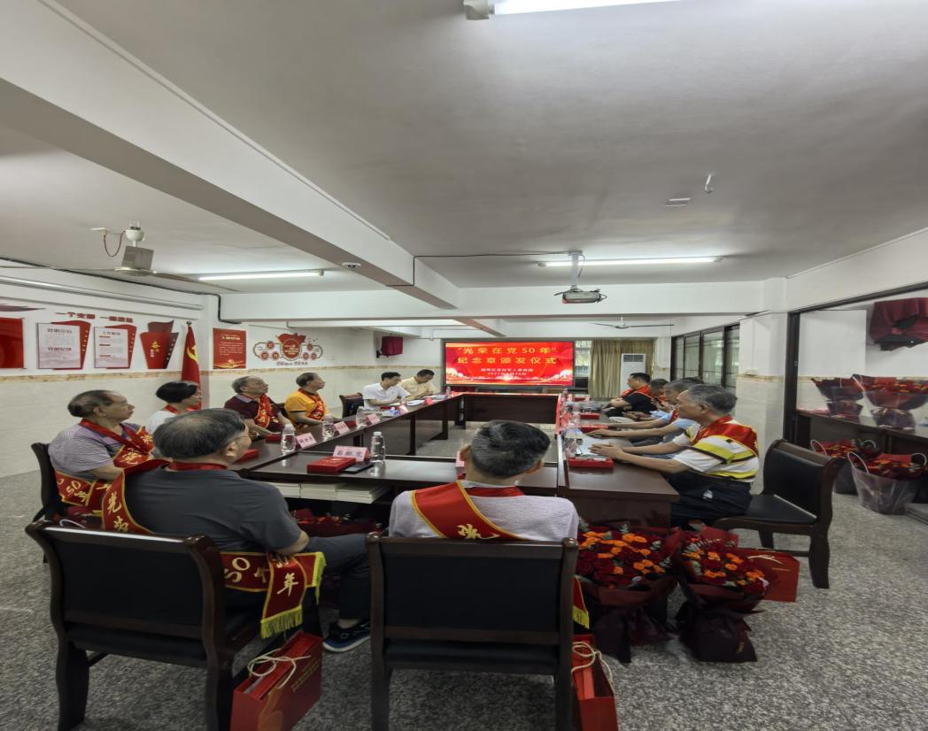 荣誉时刻,致敬“光荣在党50年”。在“七一”建党纪念日到来之际,越秀区退役军人事务局举行“光荣在党50年”纪念章颁发仪式,为党龄满50年的退役军人老党员代表颁发纪念章。在庄严的仪式中,老党员们精神矍铄地走上主席台,越秀区退役军人事务局工作人员为老党员逐一颁发“光荣在党50年”纪念章,并献上鲜花,向为党和国家事业奋斗一生的老党员致以崇高敬意。老党员带领新党员庄重地重温入党誓词,传承红色火种,铭记初心使命。“我志愿加入中国共产党……”在领誓人带领下,军休干部老党员和新党员共同重温入党誓词,誓言声声入心。军休干部党员代表深情回顾了在党50年的奋斗历程:“这枚纪念章,不仅仅是一份荣誉,更是我们这一代人对党的忠诚与奉献的见证。如今,它握在我手中,不仅是一份责任,更是一份使命。我永远感谢党的培养和教育,永远忠于党,忠于军队,忠于人民,只要组织需要,我愿继续发挥余热!”新党员纷纷表态:“我们将以军休干部党员为榜样,握紧时代‘接力棒’,在新时代征程中奋勇争先!”