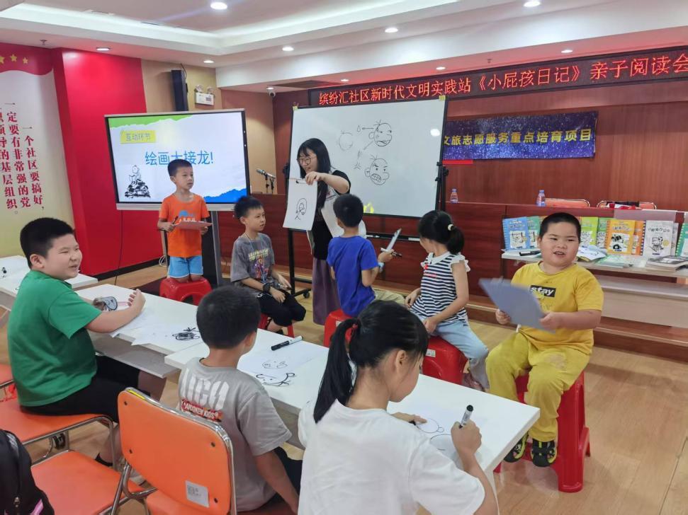 “绘画大接龙”环节,孩子们接力传递创意,现场充满欢声笑语