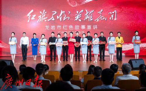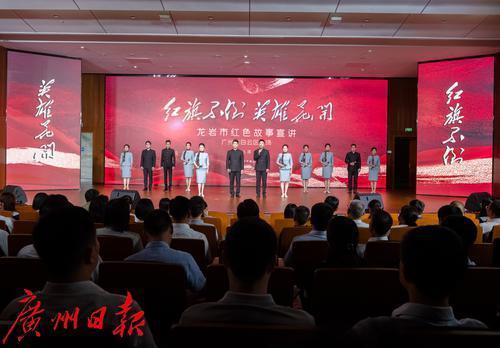 为庆祝中国共产党成立104周年,进一步深化广龙对口合作,传承红色基因,凝聚团结力量,7月4日,由中共龙岩市委、龙岩市人民政府主办,广州市委宣传部、龙岩市委宣传部承办的“红旗不倒 英雄花开”龙岩市红色故事宣讲活动广州市白云区专场,在广州市城市规划展览中心举行。广州市、龙岩市相关领导,白云区直单位、乡镇(街道)干部代表近400人参加活动。 悠悠珠江,滔滔汀水。广州与龙岩,虽分处不同地域,却因对口合作心意相通,情缘不断。本场宣讲活动精心策划,分为“红色摇篮”“血色记忆”“岩色如画”三个篇章,精选了《横扫千军如卷席》《古田之光耀征程》《到前线去》《一盏明灯传薪火》《忠魂映画铸丰碑》《清茶泉香 筑梦乡村》《林改绿富 蝶变之路》《广龙情长 共绘新篇》等8个经典故事,带领观众一起聆听红色精神的传承,感受坚定不移的信仰,拥抱追逐时代的梦想。