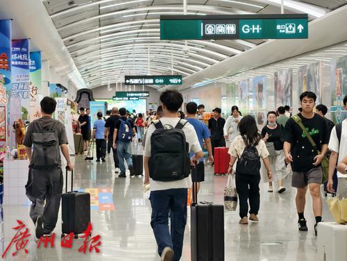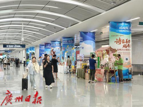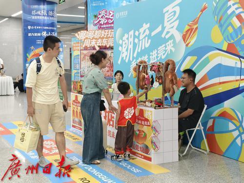 现场的文旅展位吸引过往的旅客了解相关信息。
