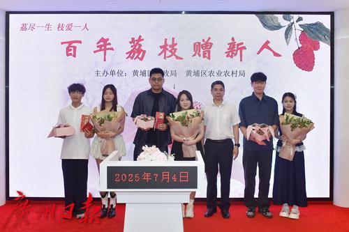 7月4日,黄埔区“百年荔枝赠新人”活动在黄埔区婚姻登记处启幕,三对新人手持象征“百年好合”的黄埔百年荔枝花束,在百年荔枝文化的氤氲中许下婚姻誓言。