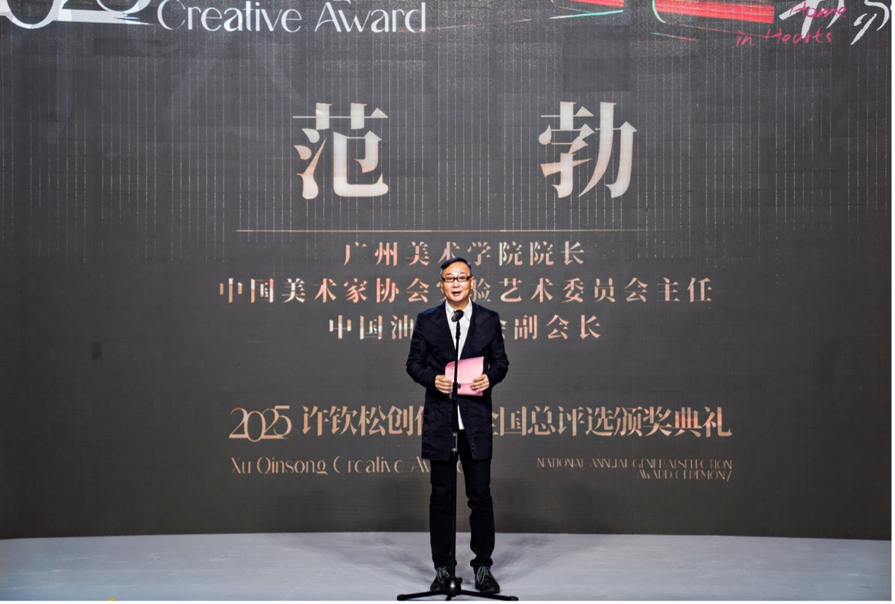 广州美术学院院长范勃表示:“许钦松创作奖自2009年在广州美术学院创立以来,已累计投入奖金数千万元,覆盖全国30个省份的两千多名青年艺术家,从单校奖项发展为辐射百余所海内外艺术高校的学术性平台。这一奖项与广美教育创新的内核深度共鸣:我们以‘大通识’教育改革打破专业壁垒,创立‘达·芬奇创新实验班’培养复合型创作者,共同构建‘湾区艺术创新系统’。十六年来,许钦松创作奖向所有艺术践行者昭示,真正的创作从不止于展厅之内,而在能否成为驱动社会前行的力量。”