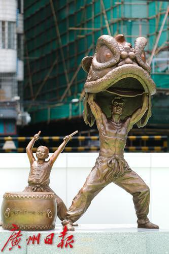 焕然一新的平安隧道上方,新落成一座以“父子醒狮”为核心意象的全铜雕塑《普天同庆》。