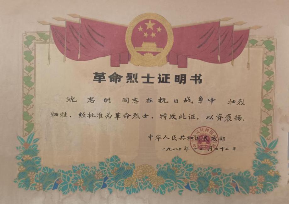 沈忠明的二儿子沈树敏如今已是91岁的老人,他回忆,父亲牺牲时,自己才三四岁,抗战胜利后,家人一度四处寻找父亲的踪迹。直到周树一找到他们,“我们才知道父亲牺牲在卢沟桥”。