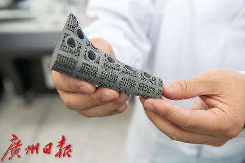 杨超教授团队展示用记忆合金制作的骨骼植入件。