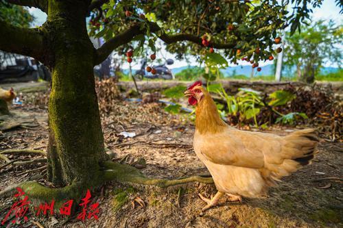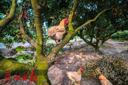 树下还养着“走地鸡”,鸡以掉落的荔枝为食,因此肉质鲜美。这些鸡便用以烹饪为著名的“朱村鸡饭”。