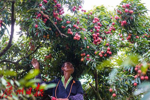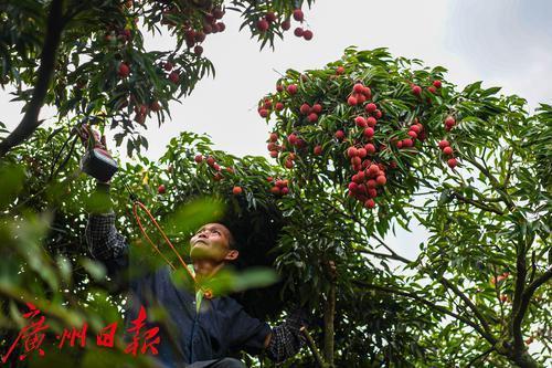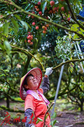 农户正采摘荔枝。