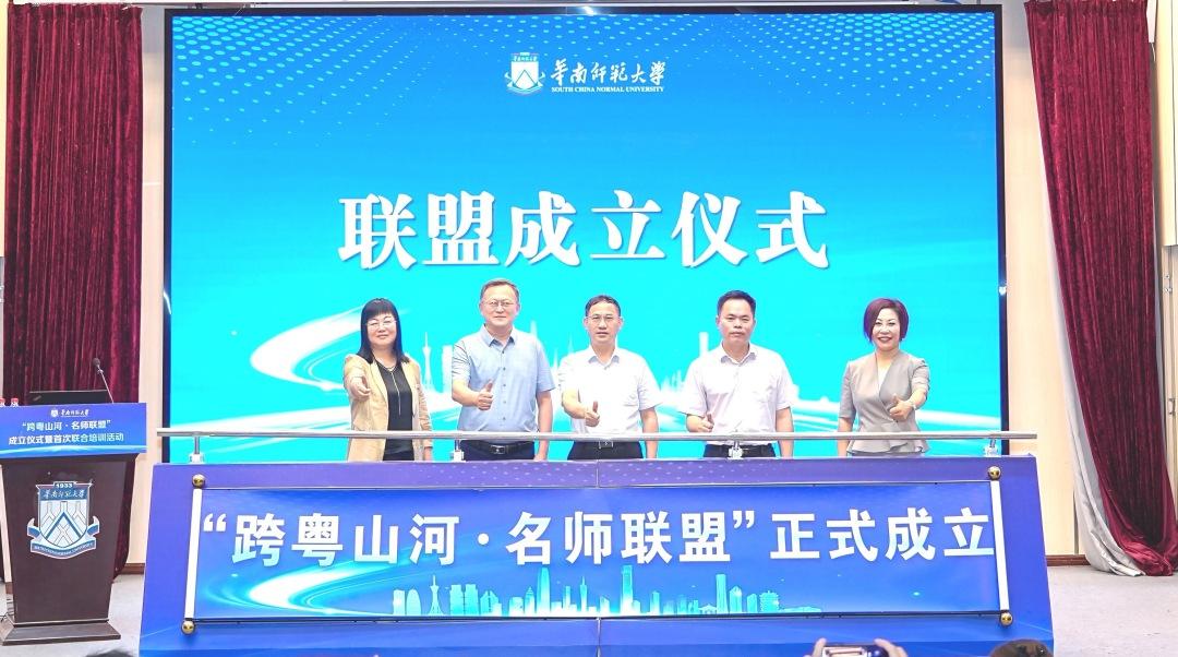 近日,由华南师范大学牵头,广东、山东、河南等省联合发起的“跨粤山河·名师联盟”成立仪式在广州举行。来自教育部“双名计划”、山东省齐鲁教育名家、河南省中原名师、广东省名师工作室、广东省“百千万人才培养工程”等项目的130余位全国名师代表齐聚华师,共同见证省域教师发展共同体的诞生。