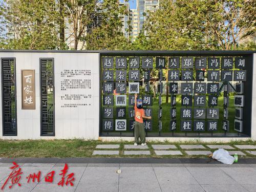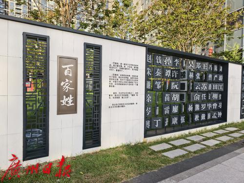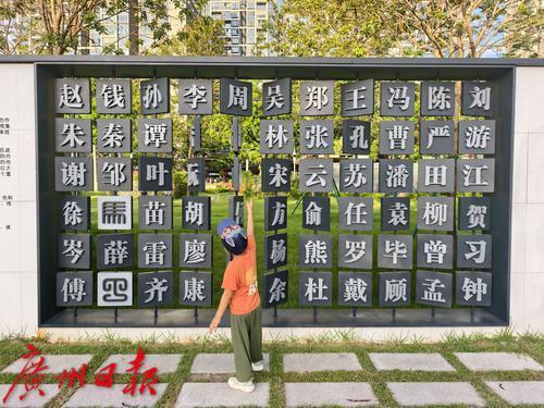 小朋友在百家姓文化景墙了解不同的姓氏。