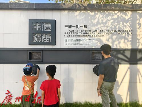“摸摸狮子头,万事唔使愁(不用愁)。”今年焕新亮相的陈家祠东广场,设计了孩童触手可及的醒狮雕塑,以国家级非遗灰塑工艺打造。广场成为陈家祠文化内涵的外延空间,让市民游客“零距离”体验本土手作,把非遗“种”在城市里。