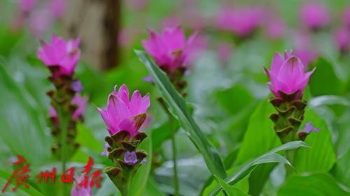 7月11日上午,天公作美,在炎炎夏日中送来了难得的阴凉天气。52种新优姜科观赏花卉争相斗艳,7万株姜荷花和3万株郁金组成了大片花海,8种非遗文化传承人现场与市民互动,白云区第三届姜荷花文化节暨全运倒计时100天趣味运动会在白云禁毒主题公园正式开幕。