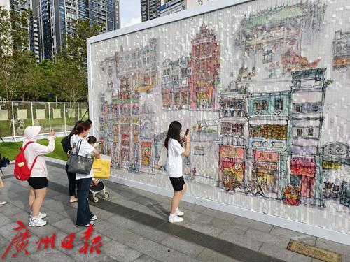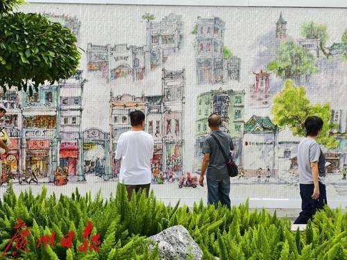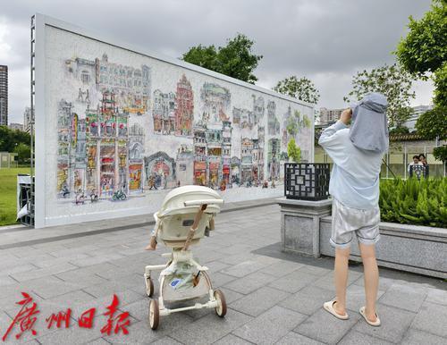 巨型“风动”装置,以14256片彩绘片组合呈现小林漫画中的荔湾风情,微风摇动,画面波光粼粼似水。