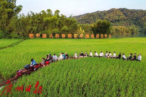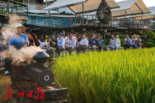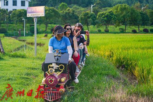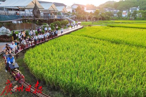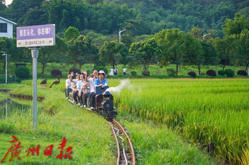 广州这处稻田里的小火车,近年来成了许多市民游客游玩拍照的网红打卡地。这片稻田位于从化区良口镇米埗村,米埗村因历史上为从化北部粮食交易码头而得名,如今已走出一条特色乡村振兴之路。该村采取“公司+农民合作社+村民”的发展模式,成立全省首家以民宿为主的农民专业合作社,打造高端民宿产业集群,实现与周边产业协同发展。2025年3月启动的提升项目,进一步完善了村内基础设施,提升了环境品质。来此旅游观光的市民游客,经过稻田时,都会忍不住坐上小火车,感受一番穿梭田野、细嗅稻香的乐趣。