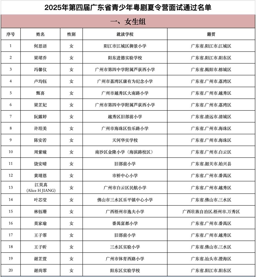 附:第四届广东省青少年粤剧夏令营入围名单——