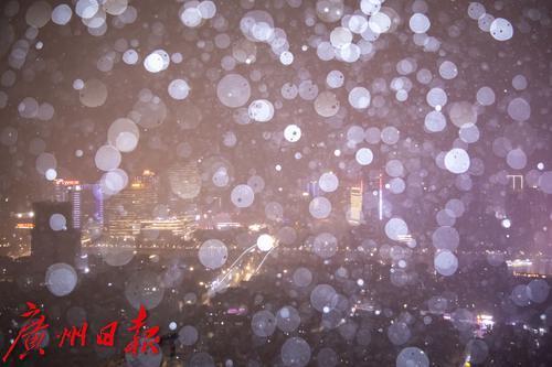 闪光灯拍摄效果,倾泻而下的雨滴仿佛凝固在空中雪花。
